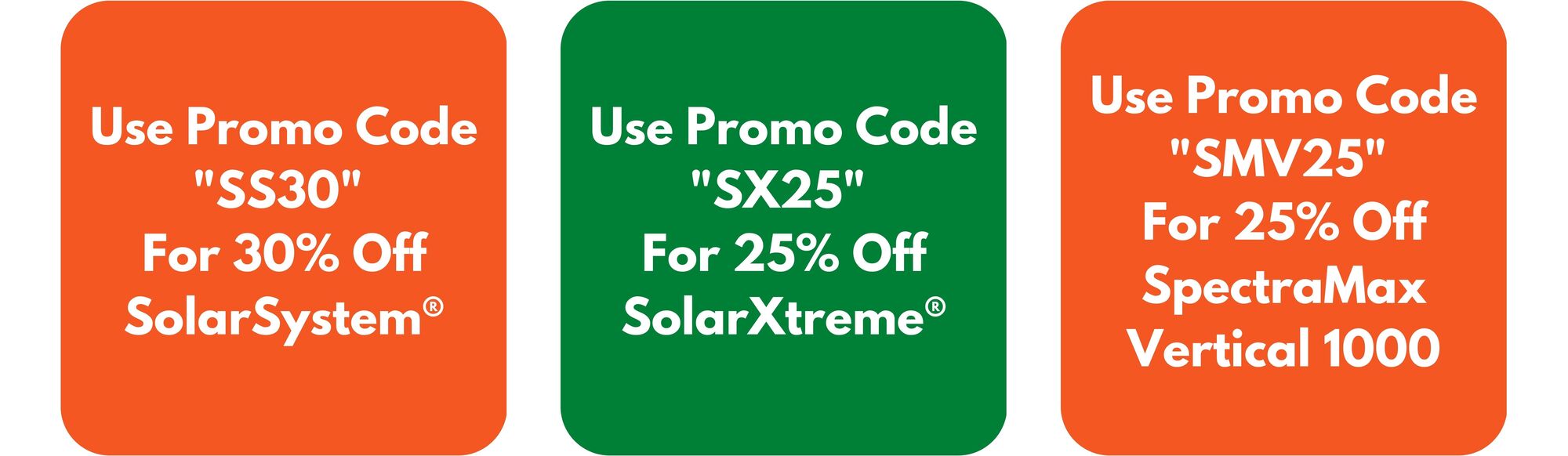 Save 30% off on SolarSystem® models and 25% off on SpectraMax and SolarXtreme® products.